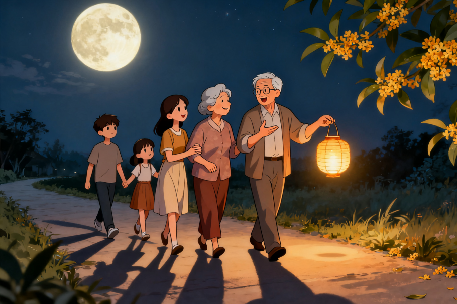 有人習(xí)慣在中秋夜陪父母散步